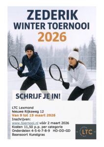 Het toernooi Zederik Winter editie 2026 van 09 t/m 15 maart staat online: